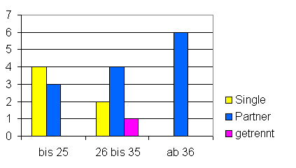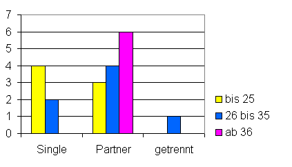 noch in der Mehrzahl, ab 36 dagegen war keine der Befragten mehr alleinstehend.