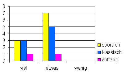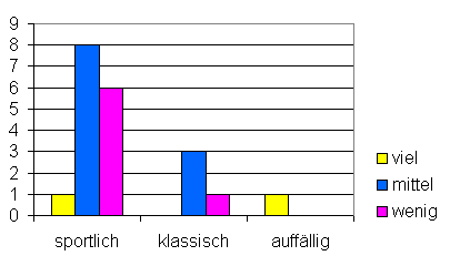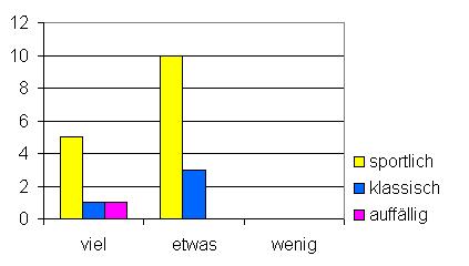 sich nur wenig für Mode, die Mehrheit von 13 Personen dagegen mittel